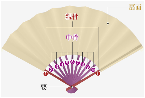 ここでは「扇面」「親骨」「中骨」「要」をご紹介いたします。